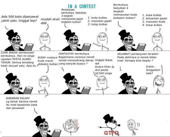 Spoiler for Internet Lemot: ![]() Ketuker CD: ![]() Tebak Dia Lihat Kemana?: ![]() Naik Ojek: ![]() Rooney gatal?: ![]() awas dia mau ciuman: ![]() Sesuatu: ![]() Spiderman: ![]() spion: ![]() Bakso: ![]() untuk diminum: ![]() ya jelas orang pilih paket 1: ![]() ![]() |